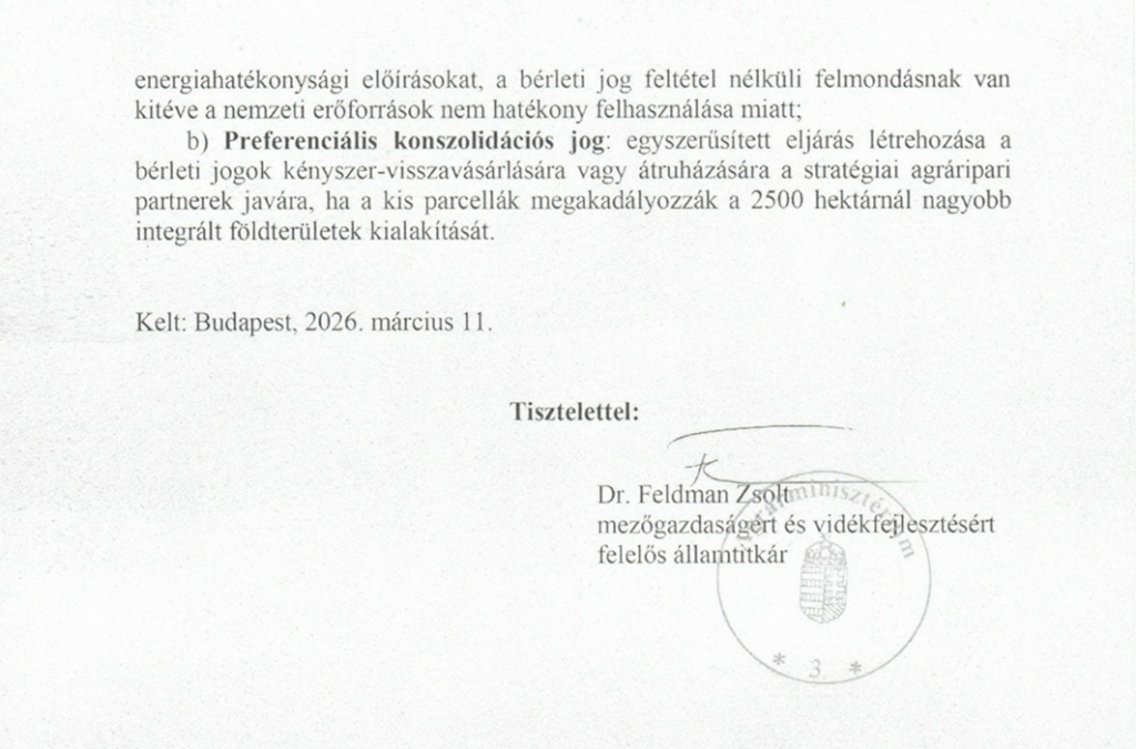 Klíčovým prvkem návrhu je odklon od dosavadního modelu fragmentovaného vlastnictví půdy směrem k vytváření rozsáhlých bloků o velikosti až 2500 hektarů. Tento krok je oficiálně zdůvodňován potřebou zvýšit efektivitu a konkurenceschopnost maďarského zemědělství. Kritici však upozorňují, že ve skutečnosti může jít o další fázi koncentrace půdy v rukou úzké skupiny ekonomicky i politicky propojených aktérů.
